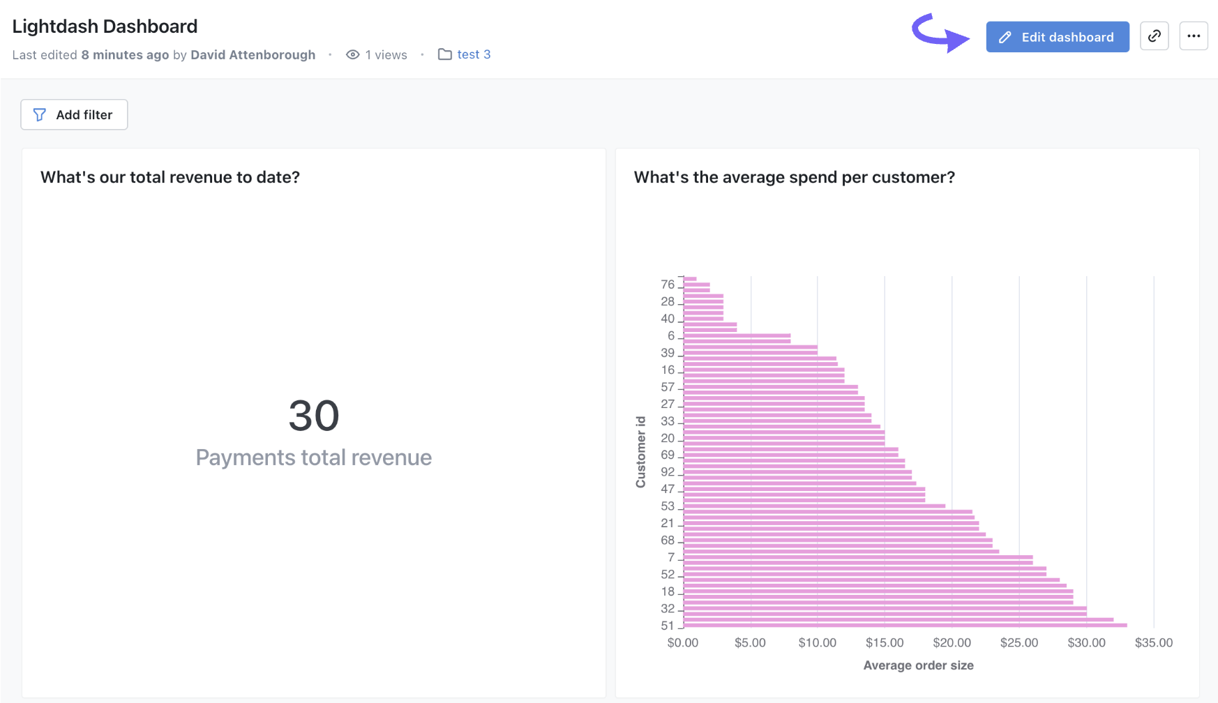 Now let’s add some filters to your dashboard. First, start by editing your dashboard by clicking on theEdit dashboard