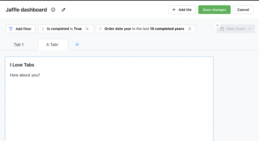 As your dashboard grows you may find it supporting multiple teams and use cases. Lets add tabs to your dashboard for better organization!Use tabs in these scenarios