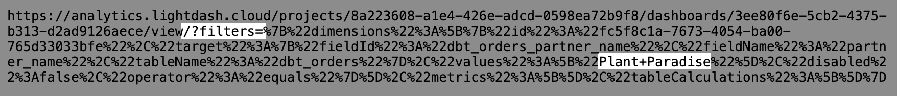 key in the URL. Everything after that is a JSON object that has been URL encoded. If you want to see the JSON you can find a URL decoder online to reformat it.- Replace the filter value that you chose in step 2 with