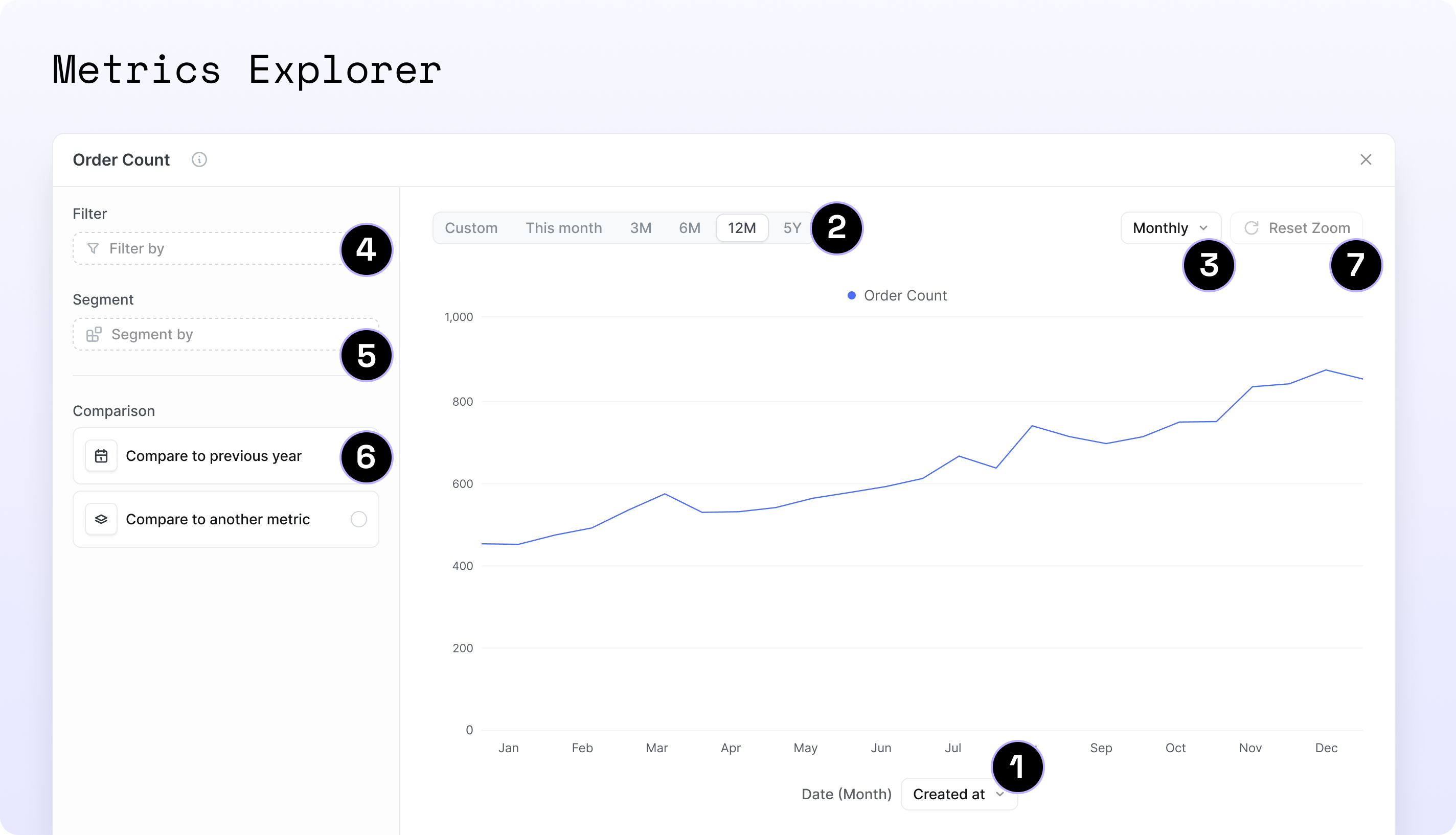 - Segment-by: Break down the metric by any non-time dimension in your dataset.
