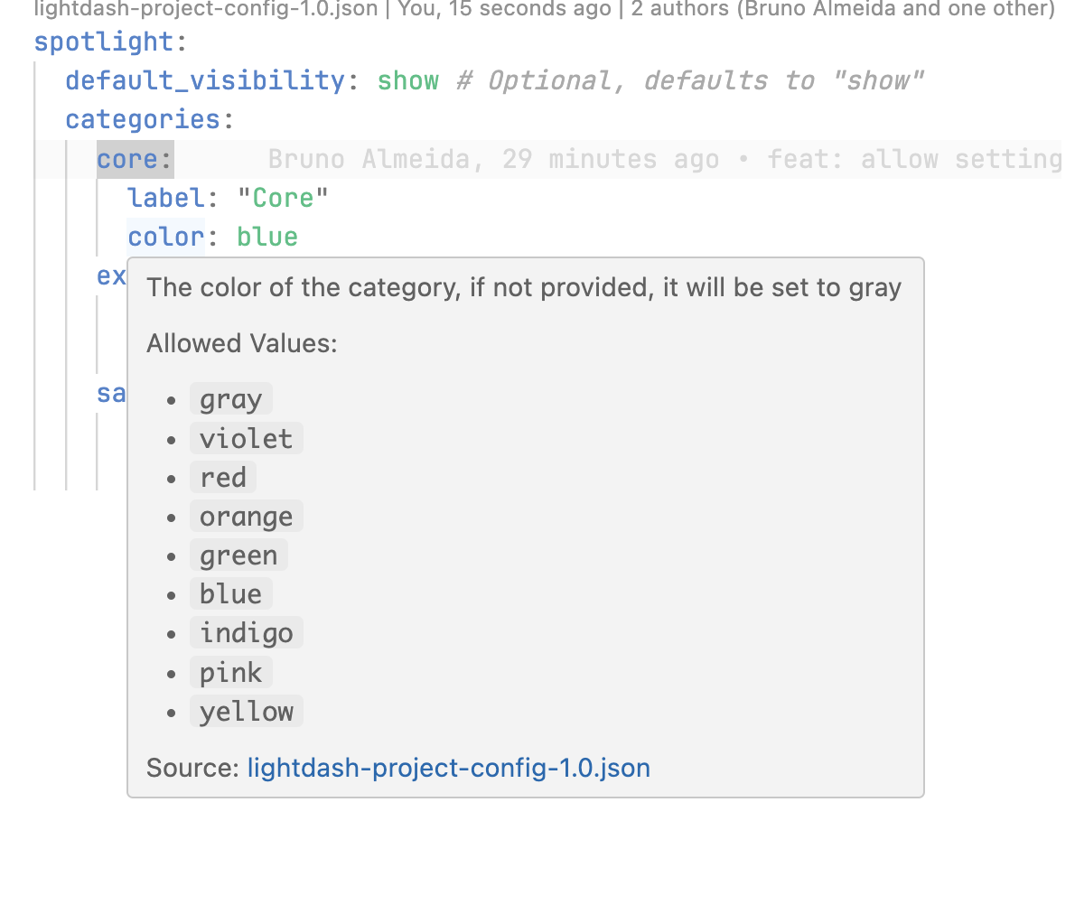 file. And remember, you can only add categories that have been defined in the lightdash.config.yml