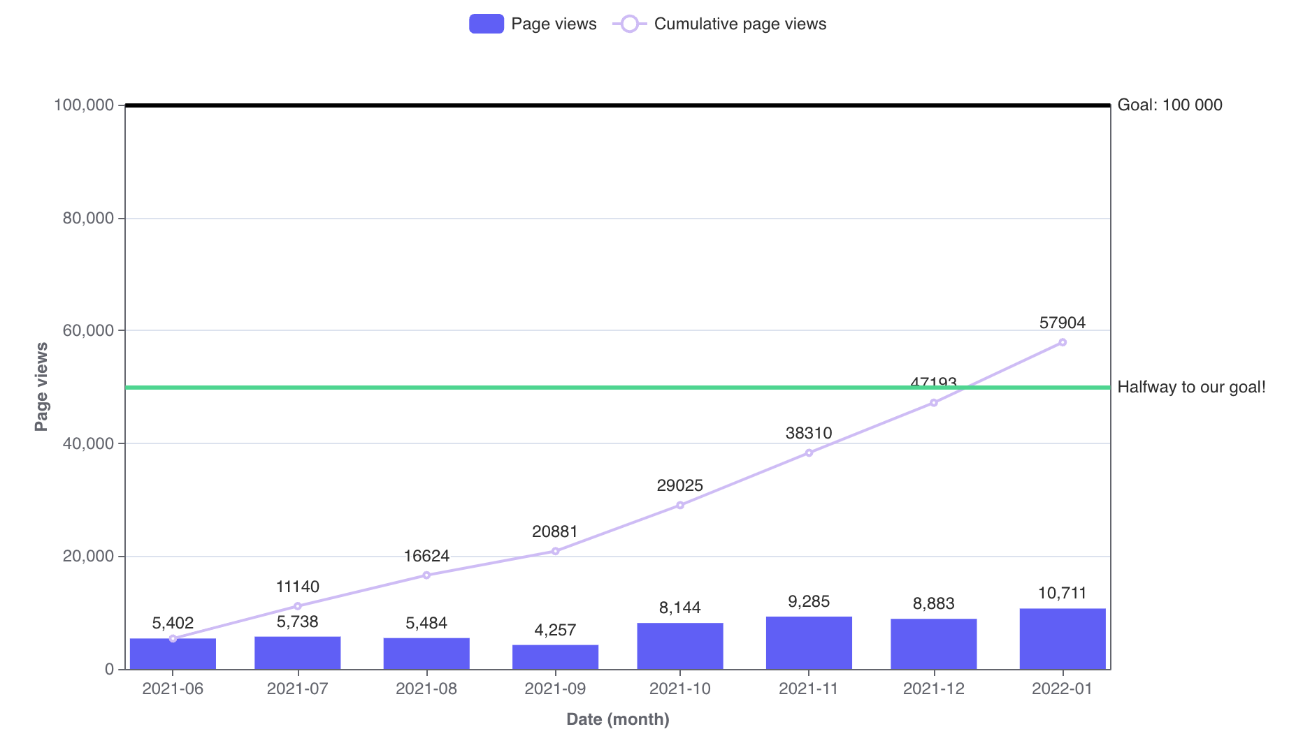 For example, if you count the distinct number of devices that viewed pages on our website each month, it would look something like this:
