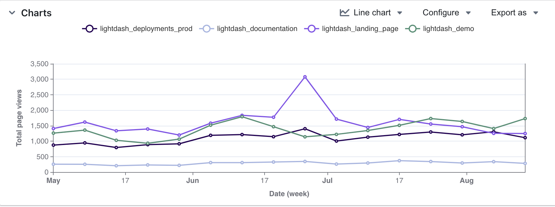 Lightdash uses a SQL query to calculate the distinct number of devices across all of the months so we avoid double-counting devices.