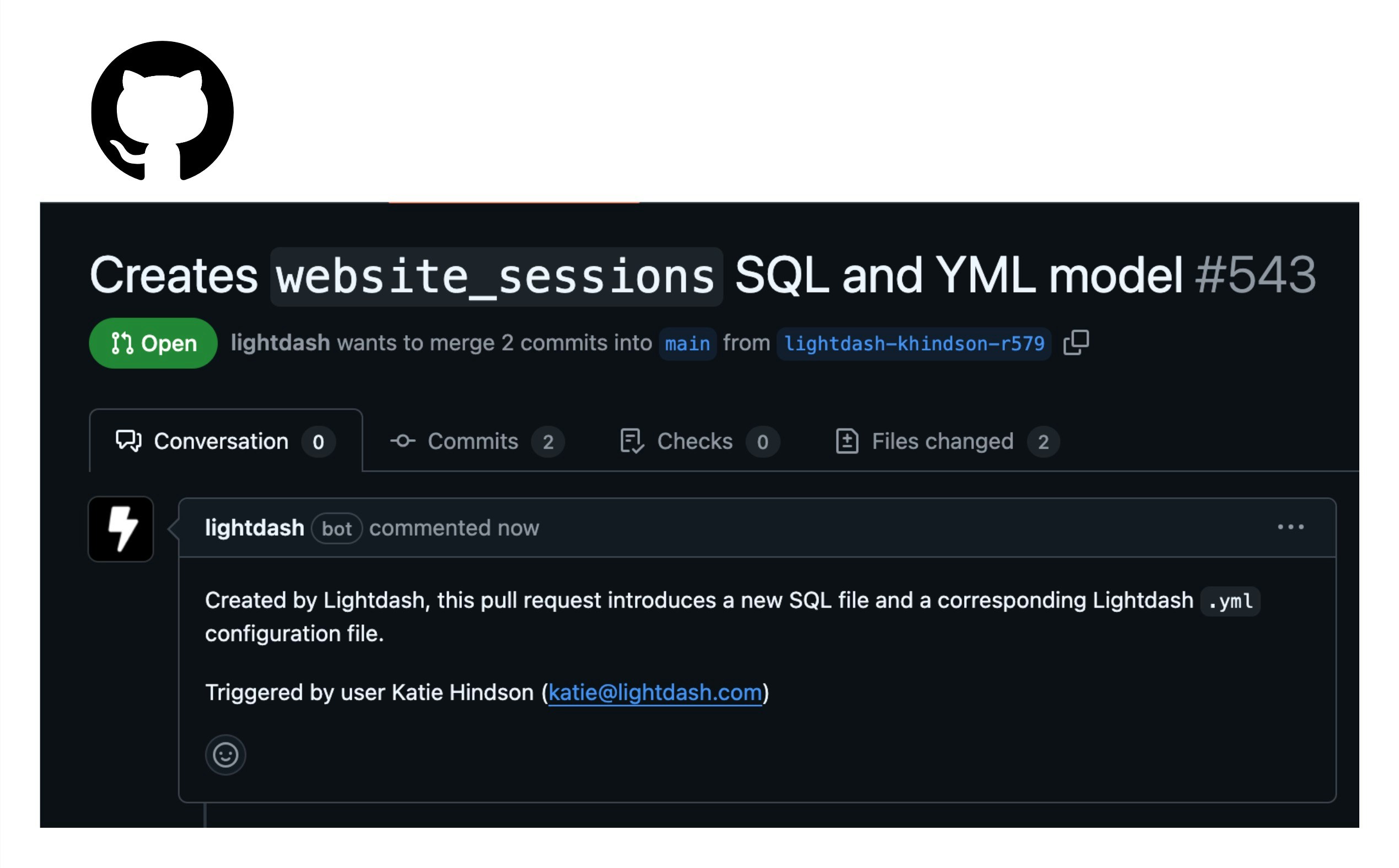 will open a pull request created by Lightdash against your dbt project in GitHub or GitLab.