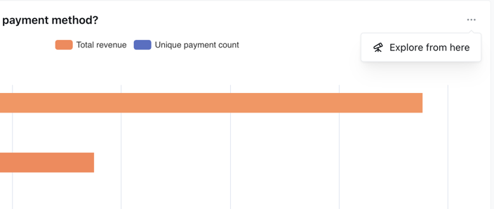 This option allows users to open a dashboard chart in the Lightdash Explore view. Within an embedded context, users can only interact with the chart from which they clicked “Explore from here”. Any changes to a chart in this context will not be saved. Embedded users also are not able to run raw SQL for any Explores. On the embedded dashboard, “Explore from here” is accessible from the...