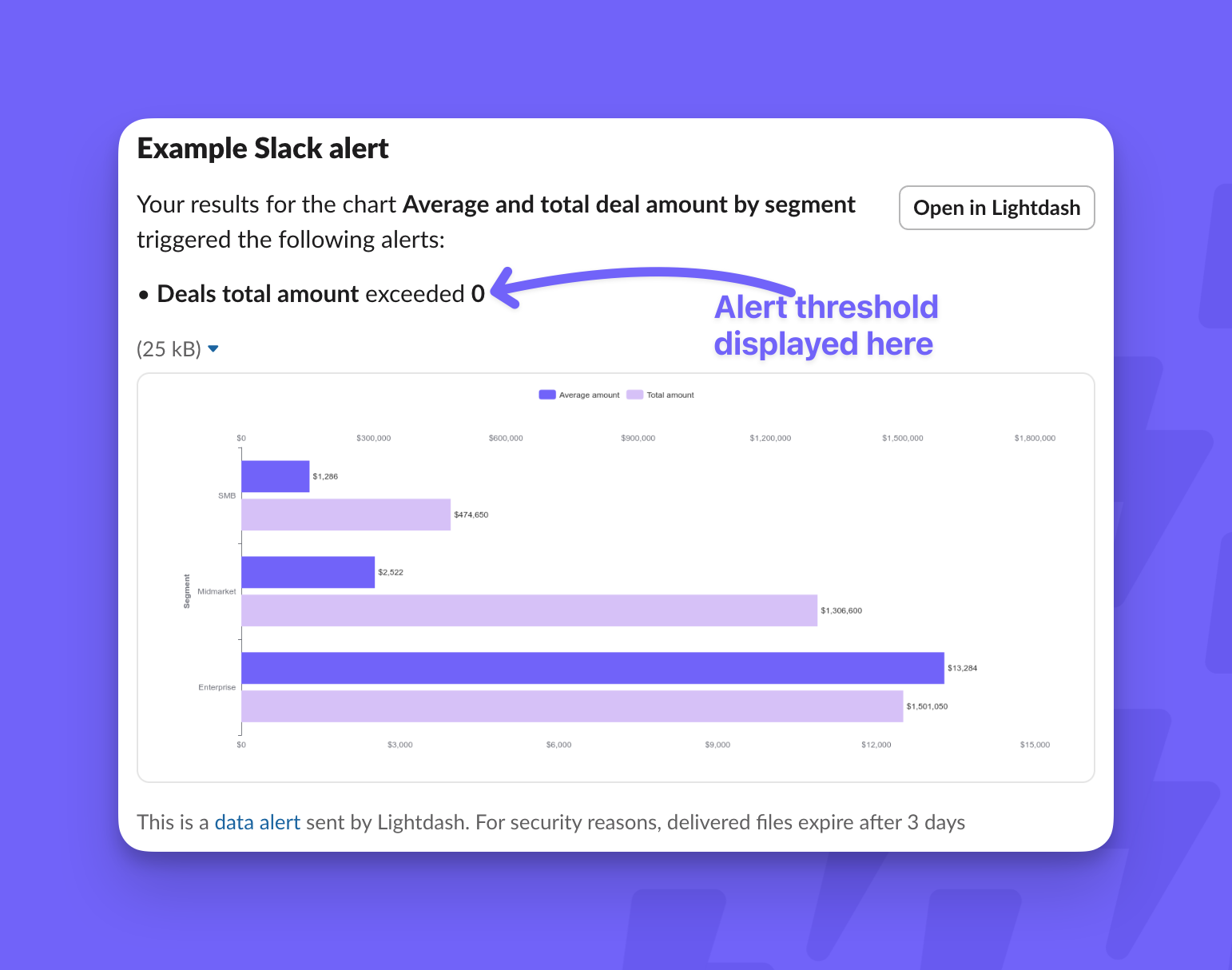 In addition to scheduled deliveries, you can also set up alerts on saved charts that only send to slack if certain criteria are met.