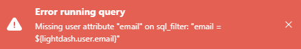 You can use user attributes to filter the rows returned by a join. This is useful if you want to restrict the data returned from the joined table. To reference a user attribute in your sql, use the special lightdash reference${ lightdash.attributes.<attribute_name> }