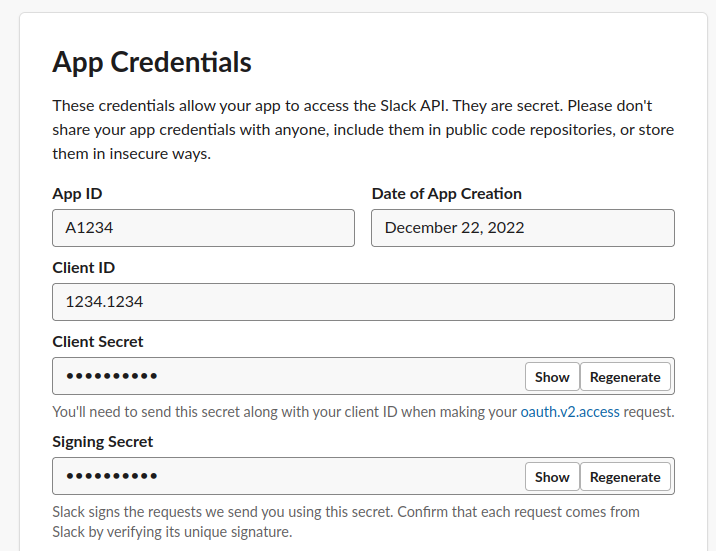 : Client ID (make sure it is between quotes, so it is a string, not a number)SLACK_CLIENT_SECRET